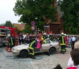 Eine schön gestaltete Ausstellung der Einsatztechnik von damals bis heute, fand im Gerätehaus statt. Hier konnte auch ein Rauchdemohaus zur Brandschutzerziehung bestaunt werden. Dieses gefiel der polnischen Jugendfeuerwehr besonders gut.