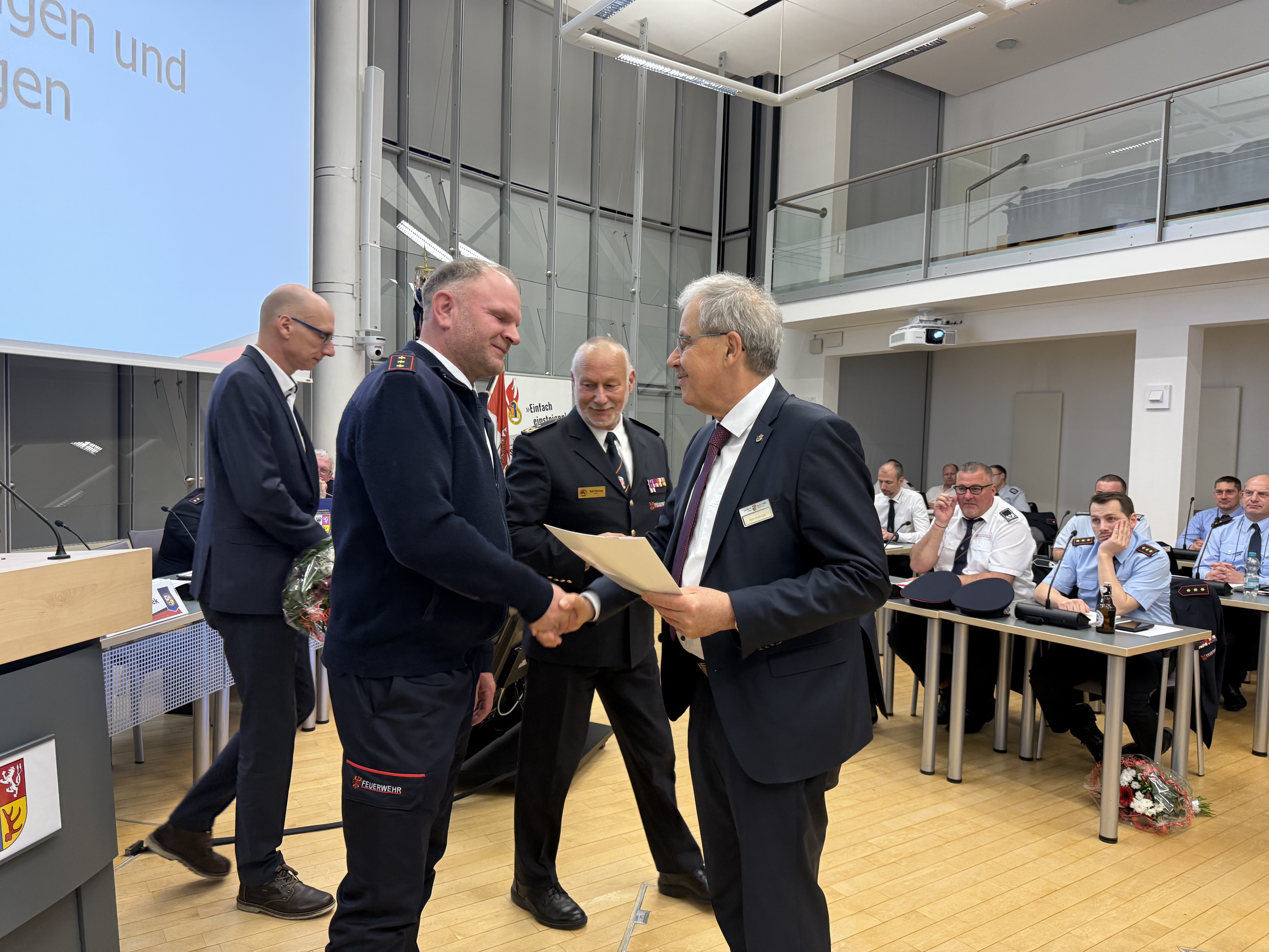 Der Verband wird sich weiterhin aktiv für die Interessen seiner Mitglieder und für die Sicherheit der Bevölkerung einsetzen. Doch in der Verbandsarbeit ist es wie im Einsatz: Alleine macht man ein Feuer nicht aus, nur gemeinsam sind wir stark. Und so nutzten wir den schönen Rahmen der Verbandstagung, um verdiente Kameradinnen und Kameraden zu würdigen.