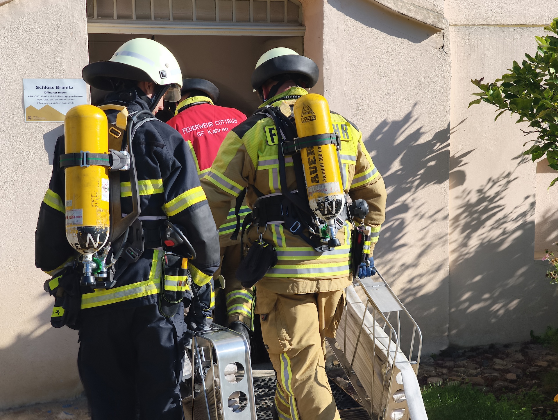 Beteiligt waren zahlreiche Einheiten der Feuerwehr Cottbus sowie die Pückler-Stiftung als Partnerin für den Kulturgüterschutz. Für den Landkreis Spree-Neiße besonders wichtig: Auch die SEG Führungsunterstützung Cottbus–Spree-Neiße kam aktiv zum Einsatz.