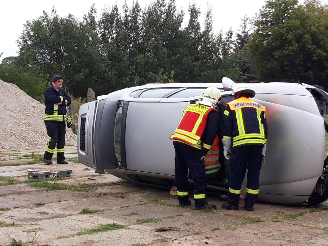 Die Bedingungen bei dieser Prüfung sind deutlich schärfer als beim Grundlehrgang "technische Hilfe", sind im Feuerwehralltag aber (leider) nicht ungewöhnlich: Ein Auto liegt auf der Seite, der Fahrer muss so schonend wie möglich und ohne Erschütterungen aus dem Fahrzeug gerettet werden. Zunächst wurde am jeweiligen Vormittag genau solche Szenarien durchgesprochen, Handlungsabläufe erläutert, technische Ausrüstungen auf den Einsatzmitteln der Feuerwehren im Landkreis besprochen und auch die medizinische Komponente definiert.