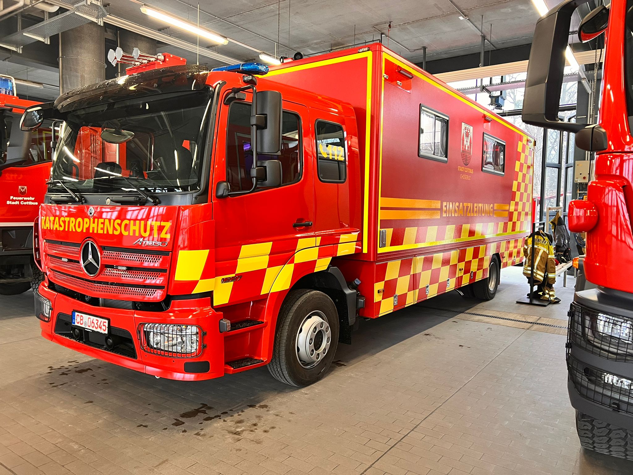 Bei dem Fahrzeug handelt es sich nicht um eine vollständige Neubeschaffung, sondern um eine umfassende Modernisierung des bisherigen ELW 2 der Stadt Cottbus, der rund 20 Jahre im Dienst war. Der Kofferaufbau wurde vollständig saniert und generalüberholt, auf ein neues Fahrgestell gesetzt und technisch grundlegend erneuert. Rund 600.000 Euro wurden investiert, um ein zeitgemäßes, leistungsfähiges Führungsfahrzeug zu schaffen. Dabei setzte man konsequent auf digitale Kommunikation und digitale Einsatzführung, ohne auf analoge Übergangslösungen zurückzugreifen.