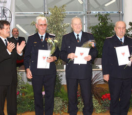 Das „Feuerwehr-Ehrenkreuz“ des Landesfeuerwehrverbandes Brandenburg für Verdienste im Feuerwehrwesen und die Förderung der Verbandsarbeit wurde an die Kameradin Helga Bauer und die Kameraden Hans-Jürgen Wonneberger, Sven Noack, Jörg Forchmann, Ingolf Reimann und Günter Hanschke verliehen.