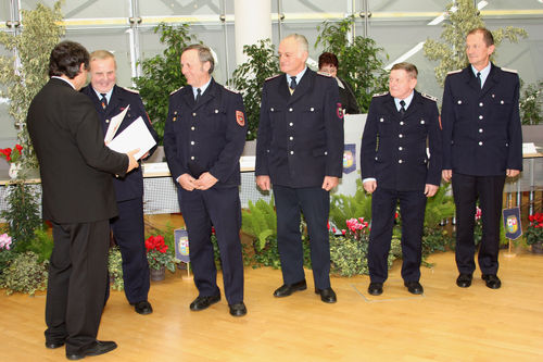 Besonders lobte der Landrat die positive Einstellung einzelner Arbeitgeber, die unter den harten Bedingungen der Marktwirtschaft das Ehrenamt der Freiwilligen Feuerwehr mittragen und ihre Arbeitnehmer für diese ehrenamtliche Tätigkeit freistellen.